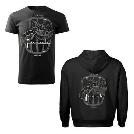 Set aus Kapuzenpullover + T-Shirt mit Junak M10 Motorrad. Das perfekte Geschenk für einen Mann, Motorradfahrer, zum Geburtstag, Vatertag oder Großvatertag.